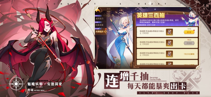 全英雄可培养:全员同起点、祈愿送UR,最强UR红龙女王亦可培养。丰富的活动玩法和免费途径,让玩家轻松获得满星UR英雄。