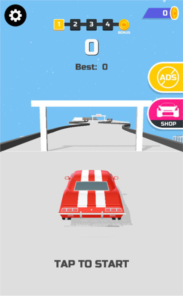 1、在本站下载安装好超级漂移,进入后上方显示的是你当前所在的关卡,点击右侧的“SHOP”进入商店。