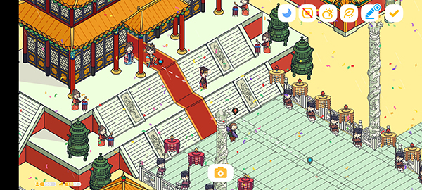 4、玩家们可以点击右上角的“相机”改变整个主题世界的天气。