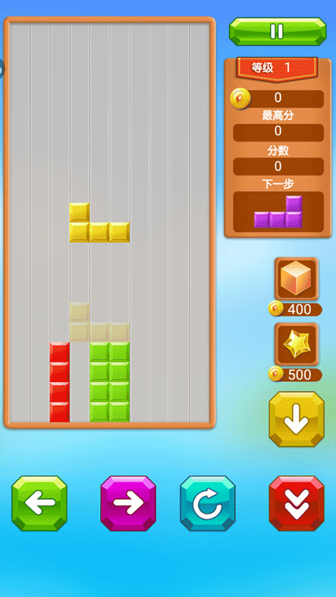 5、俄罗斯方块相信大家都玩过不少,通过移动方块的位置以及方向进行消除。