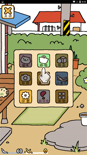 4、像猫咪、购物、物品、拍照、小鱼干、设置之类的,不妨先点击“购物”看看。