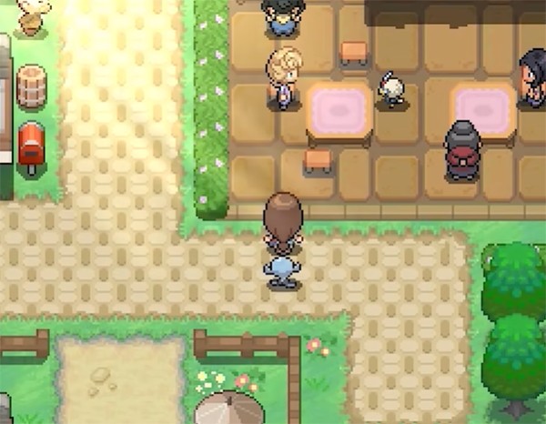3、拿到宝可梦后出门右拐,来到这里与其对话进入第一次的战斗。