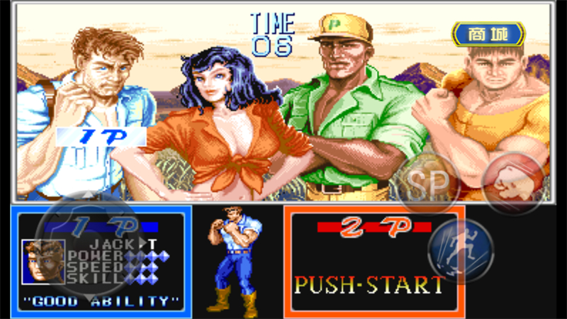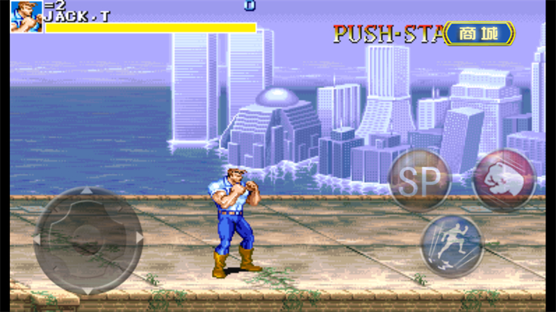 回旋攻击:同时按AB键。一定范围内击飞敌人并使被击飞的敌人起身后晕眩(第一关和最终BOSS不会晕眩),但是会消耗约10%的血,而且打出版边不会出现晕眩。