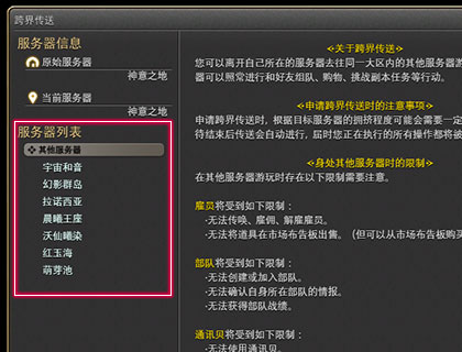 2、伴随「跨界传送」功能的添加,玩家角色所属的服务器将被称为「原始服务器」,「跨界传送」可以将玩家角色从「原始服务器」完整地移动到其他服务器。除去部分不可使用的功能,与「原始服务器」一样,可以与好友组队、购买商品、自由地享受副本等等。