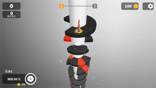 1、游戏操作方式极为简单,玩家仅需用手指在屏幕上左右滑动,就能转动柱子,进而控制球球的落点。