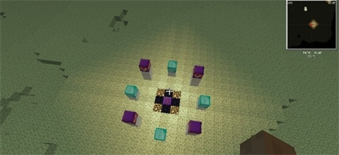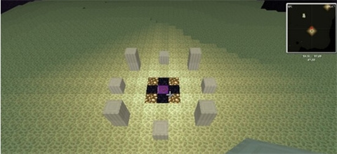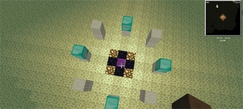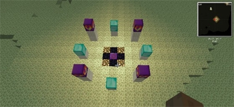 3、复活石在中间 用黑曜石和萤石摆在周围 注意 这九个方块 是嵌在地上的