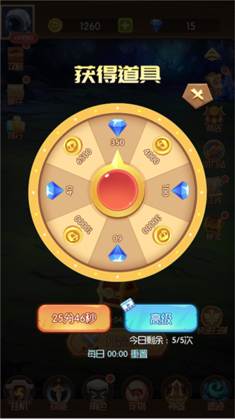 钻石获取来源:转盘,boss关卡,挂机,每日商店,每日任务。