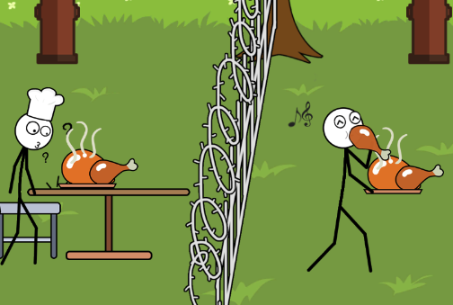 2.思考关卡的内容给,帮助火柴人完成偷盗