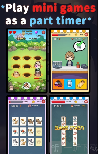 3. 可在兼职大楼里尽情畅玩迷你游戏。通过升级建筑物,为女孩送上礼物。