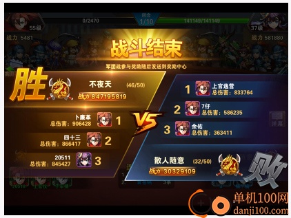 4、战斗结束后,能看到统计界面,其中包含胜负方情况以及伤害排名前三的玩家信息。