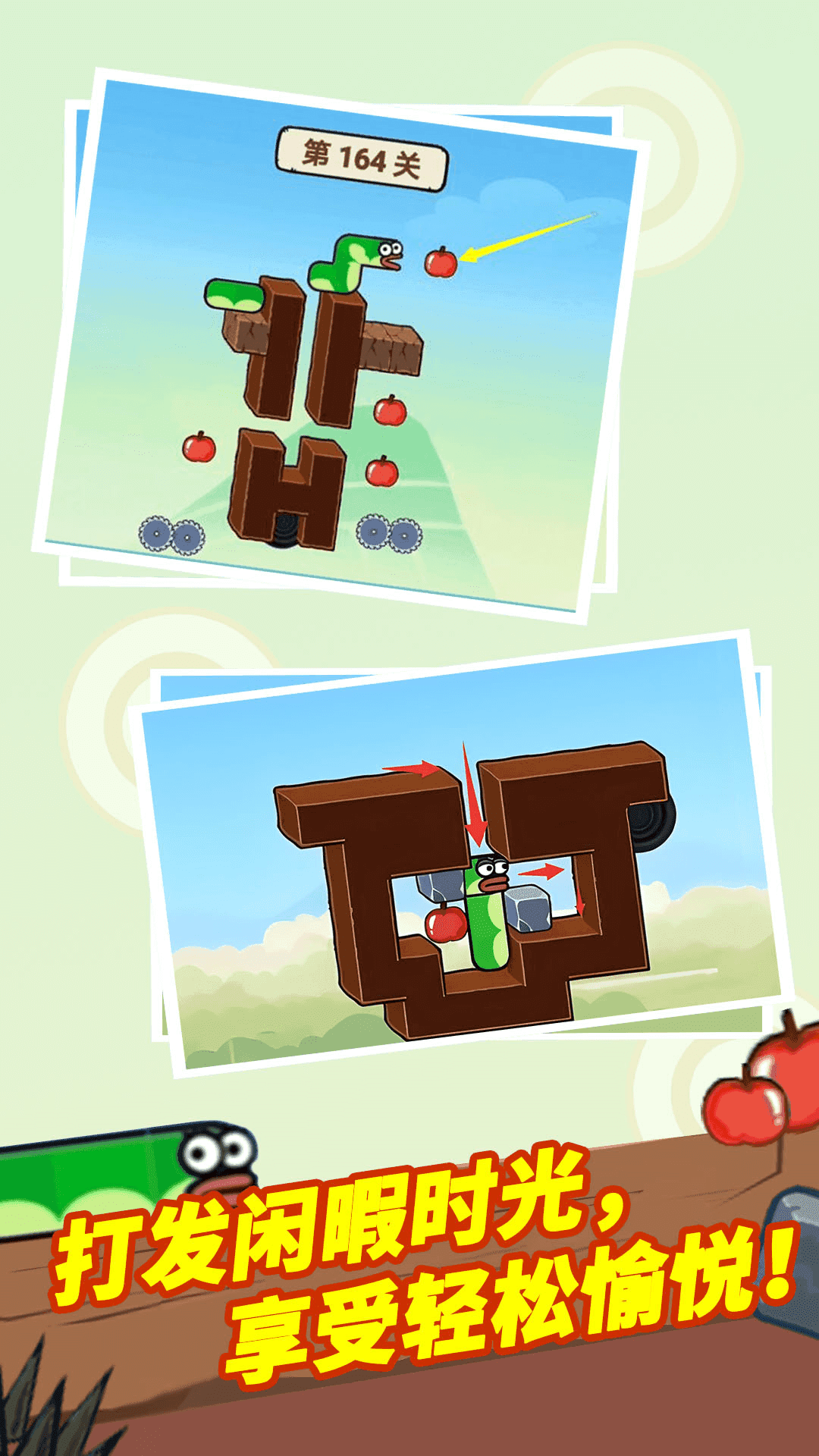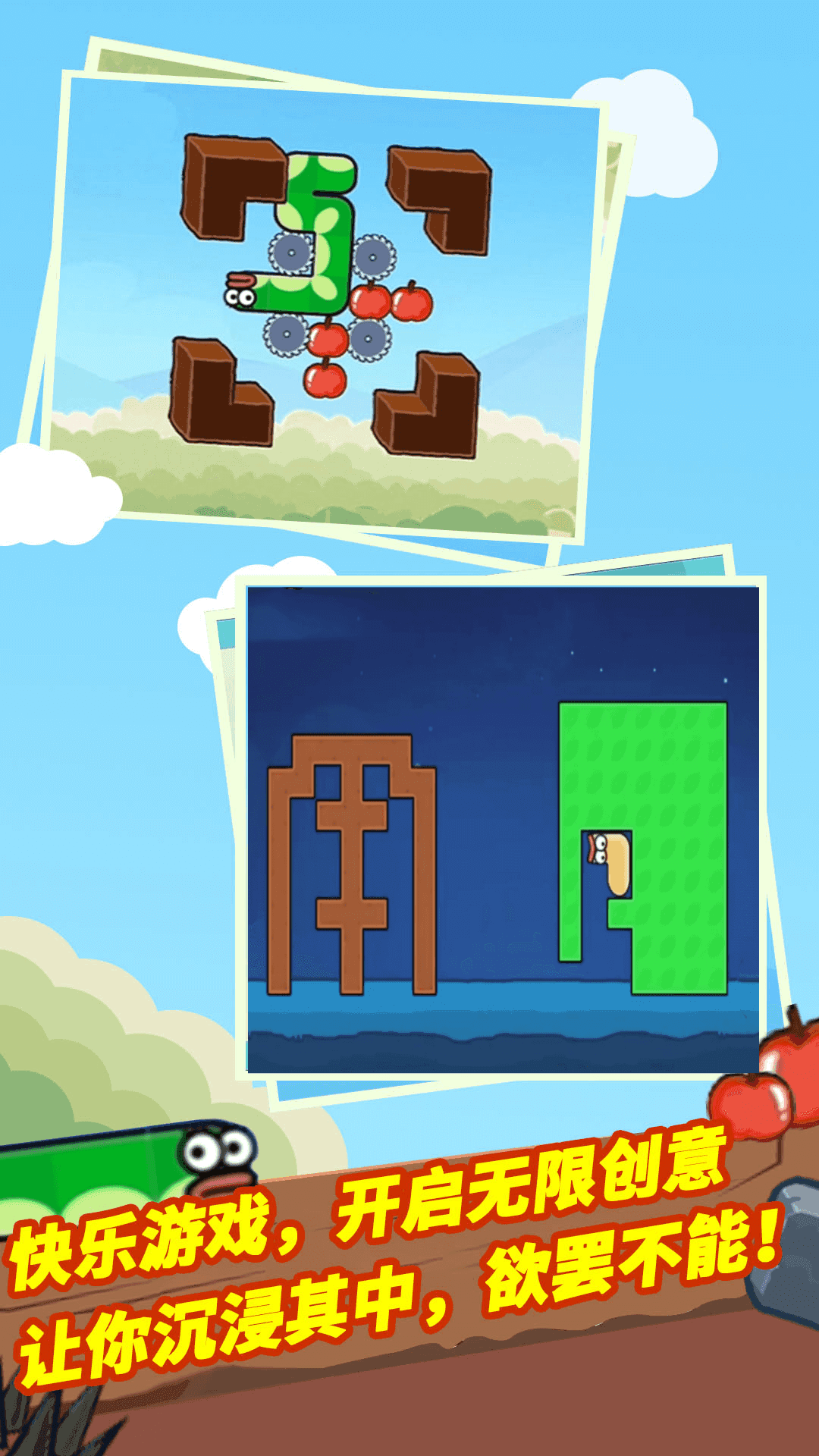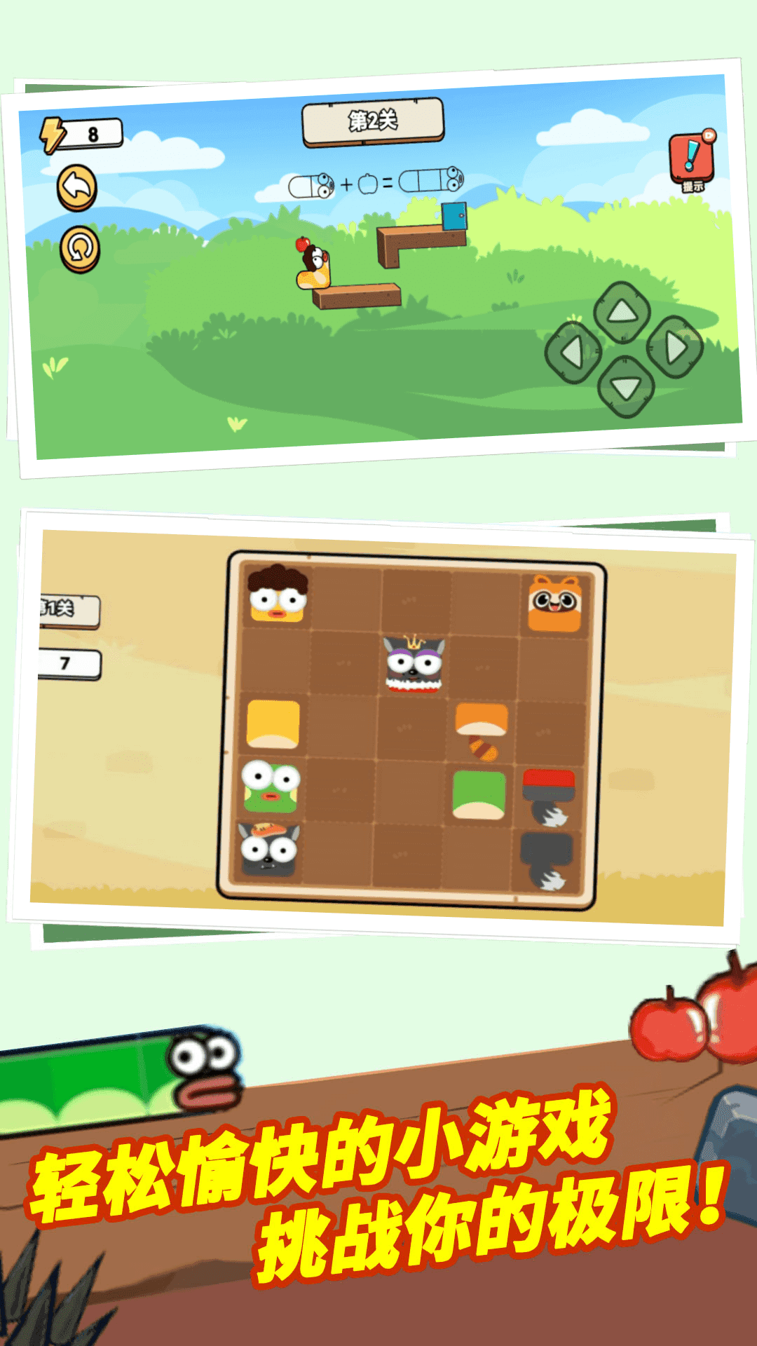 2、每吞噬一个苹果,小蛇的身体长度也会加长,可以抵达更高的地方。