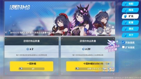 3、点击“扩充”,你就能参与活动补给,选择十连抽或单抽,尽情享受每一次抽卡带来的兴奋。