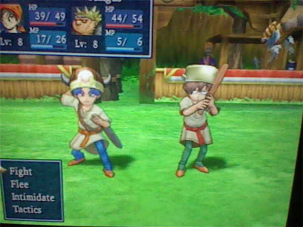 游戏一开始,便看到主人公和土匪大叔、变成那美克星人的国王、变成白马的公主一行人在树林中休息,突然,国王跳起来说“咱们走吧,到下个村子里去,好好休息下,还有这位大叔(关于国王和大叔的矛盾,请看后面)”土匪大叔马上不干了,跳起来和国王吵了起来,完全忘记公主貌似不见了,正在寻找时,突然数只史莱姆杀了出来,第一战熟悉战斗系统,搞定后白马从树林里走出,还好没走丢,好了,出发,寻找附近一个村子休息下。