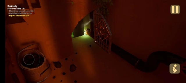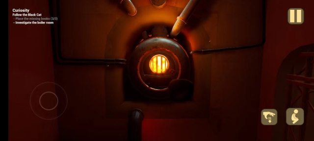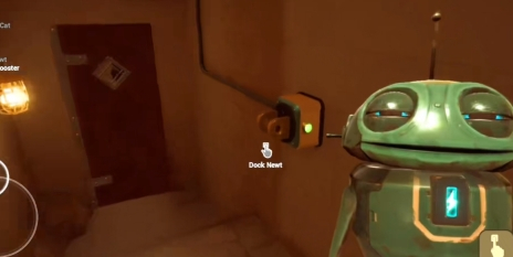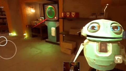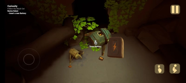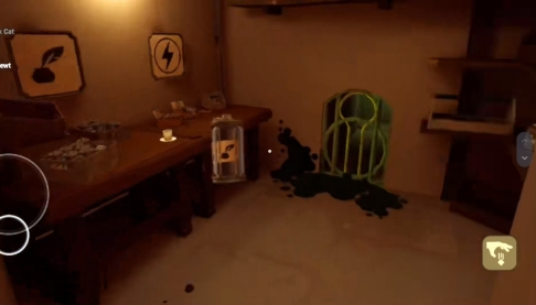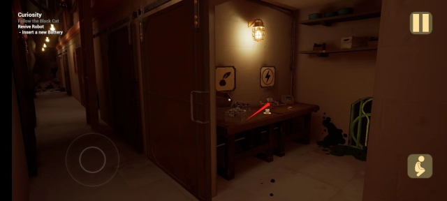 10、向右侧行进,推开里面的那扇门,就能看见小猫,随后会出现一个机器人,此时玩家要去寻找电池。