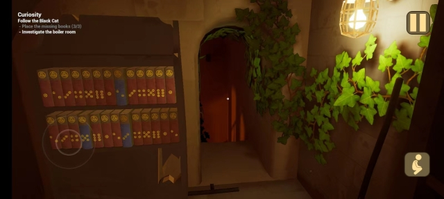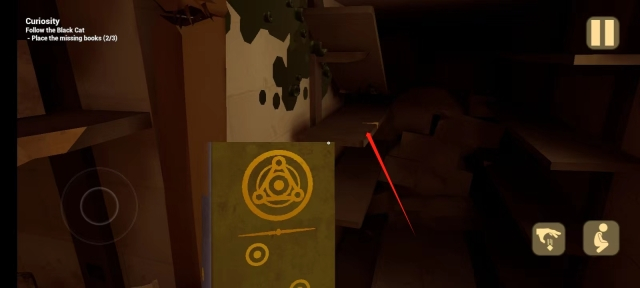 4、接着便正式开启游戏,向前行进,你会看到一个书架,书架上缺失了三本书。玩家需寻找到这三本书,并依据树上圆点的数量,将书放置到对应的位置。