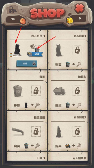 4、于SHOP商店界面,能够运用积攒的金币购置各类设施,以此提升垃圾处理的能力与效率,推动游戏里垃圾处理业务的发展。