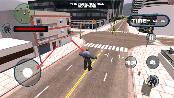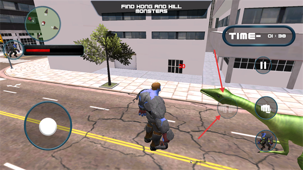 3、通过操作左侧摇杆来控制角色移动,于城市里寻觅目标怪物。