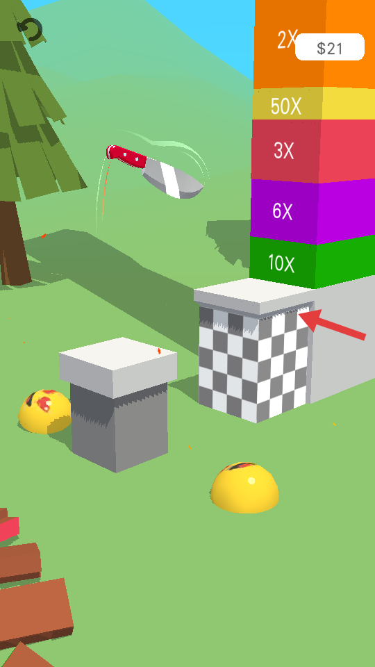 3、不断投掷飞刀,朝着终点前行,积累分数。