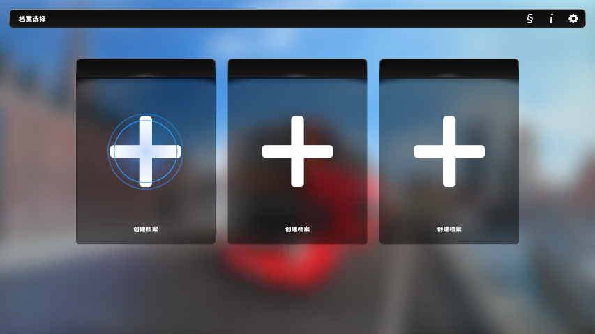 1首次进入游戏后,轻点屏幕上的“+”号图标,创建属于自己的游戏存档,开启你的驾驶生涯之旅。
