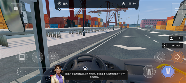 5、进入驾驶界面后,在左下角可以看到三个功能按键,分别用于控制车门开关、鸣笛提醒行人以及启用雨刷以应对恶劣天气,操作十分直观便捷。