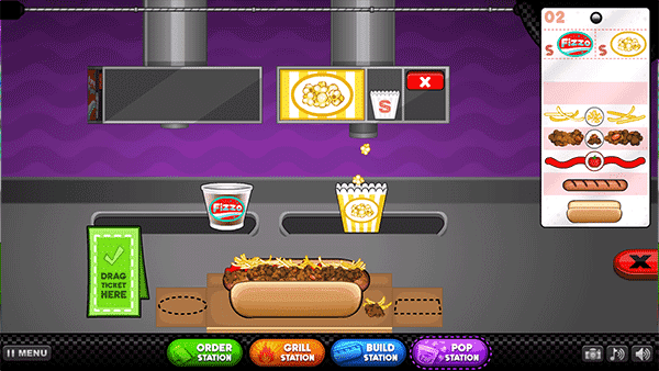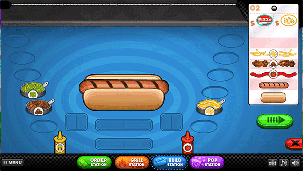 2. 完成点餐操作后,点击料理台,此时你要依据右侧的菜单来进行制作。