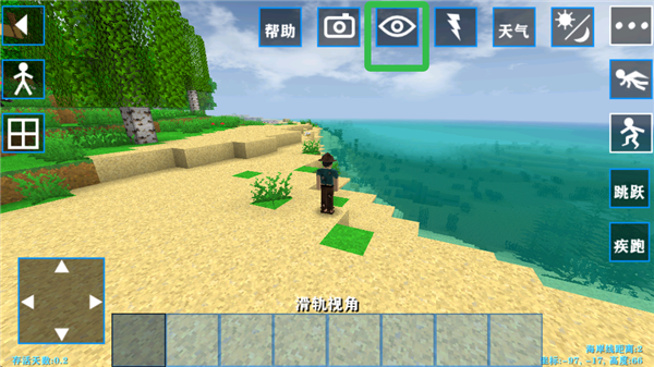 2. 当前处于第一人称视角,点击眼睛图标,就能切换到第三人称视角。