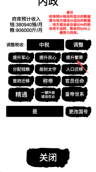 8、其中主要是提升己方势力的繁荣度,这能够增加己方每月的收入。毕竟在游戏里,大部分行动都需要耗费资金。