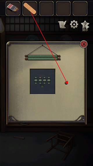2、切换回主场景并向右滑动,在地上板凳的底部能找到一个物品——创可贴。