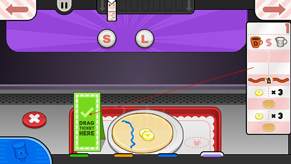 4、面饼烤制完成后,便开始添加配料。此时,只需将托盘朝着煎饼的位置拖动,煎饼便会自动落到托盘之上。