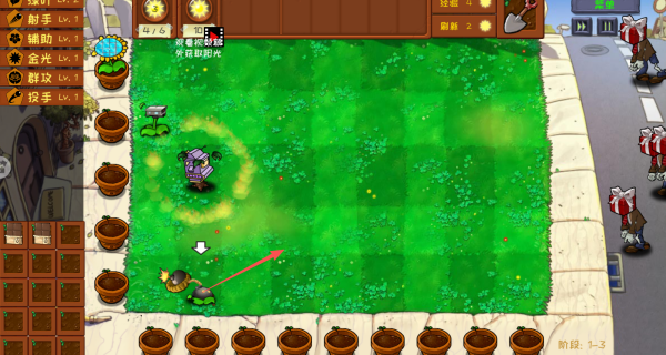 1. 游戏开局时,应优先在底部花盆种植像向日葵这类阳光植物,以此来积累阳光资源。