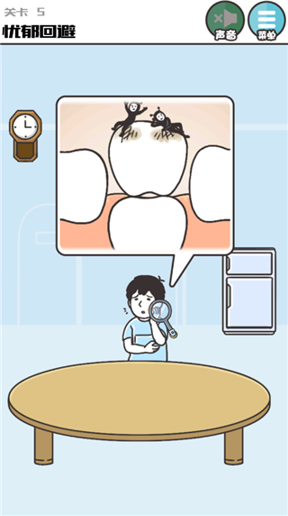 在时钟处获取放大镜,接着点击蛀牙下方的新牙,随后点击蛀牙,使其掉落。