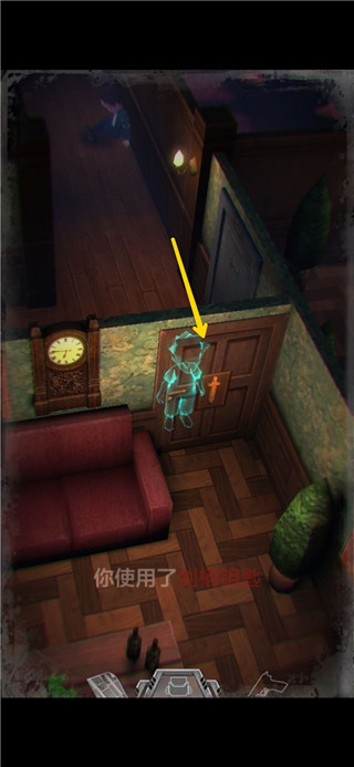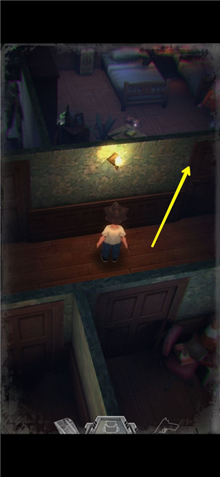 打怪小窍门:射击的时候,你既能够长按屏幕来瞄准,接着持续轻点进行射击;也可以点击屏幕下方的手枪标志来瞄准(再次点击就能取消瞄准状态),随后多次点击屏幕的其他区域完成射击;还能直接点击怪物实现手动瞄准。(一旦瞄准后,就可以持续射击,无需每次都重新瞄准,不过移动会使瞄准状态中断,要再次瞄准才能继续射击)顺着箭头所指的方向,有一扇门,走进去。要是有怪出现,别慌张,拉开距离后再瞄准(个人推荐点击下方的手枪标志),然后射击。要是在近距离被怪抓到,角色就会掉血,只要不贴脸就没问题,很简单的。当怪发出“啊!”的惨叫后,就不用再开枪了,说明它已经死了,要注意节省弹药。有些怪死亡后会掉落亮闪闪的代币,记得去踩踩怪物的尸体。