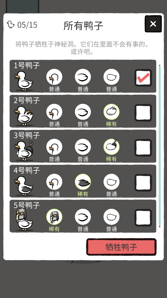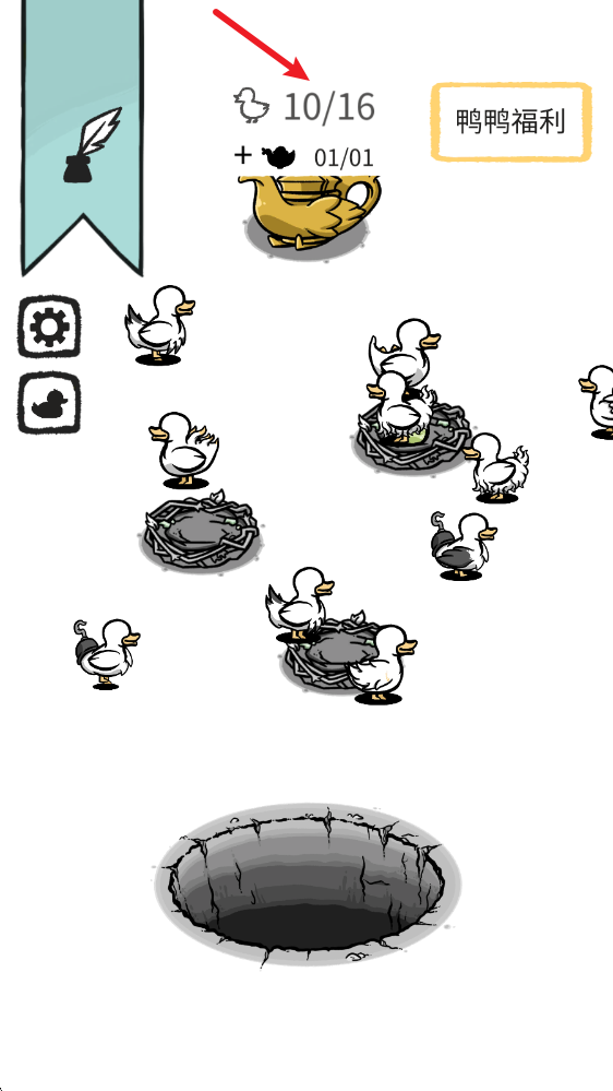 6、待鸭子数量达到上限后,点击左侧的鸭子图案,在此处能够牺牲已有的鸭子。