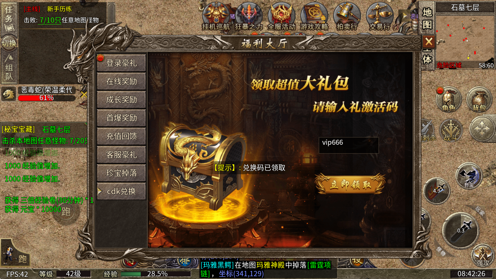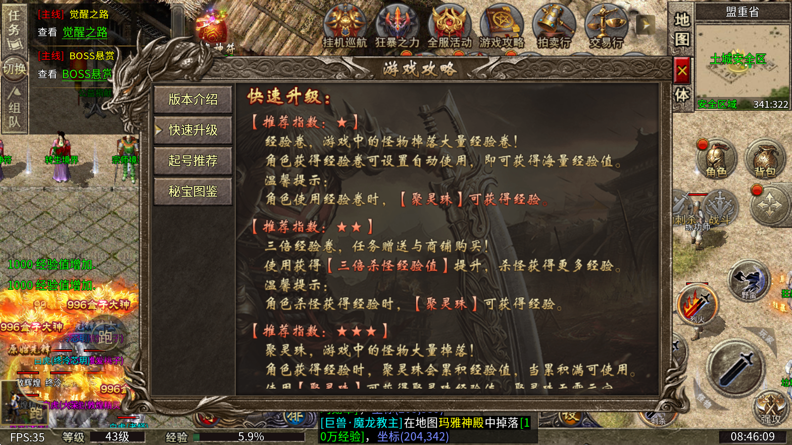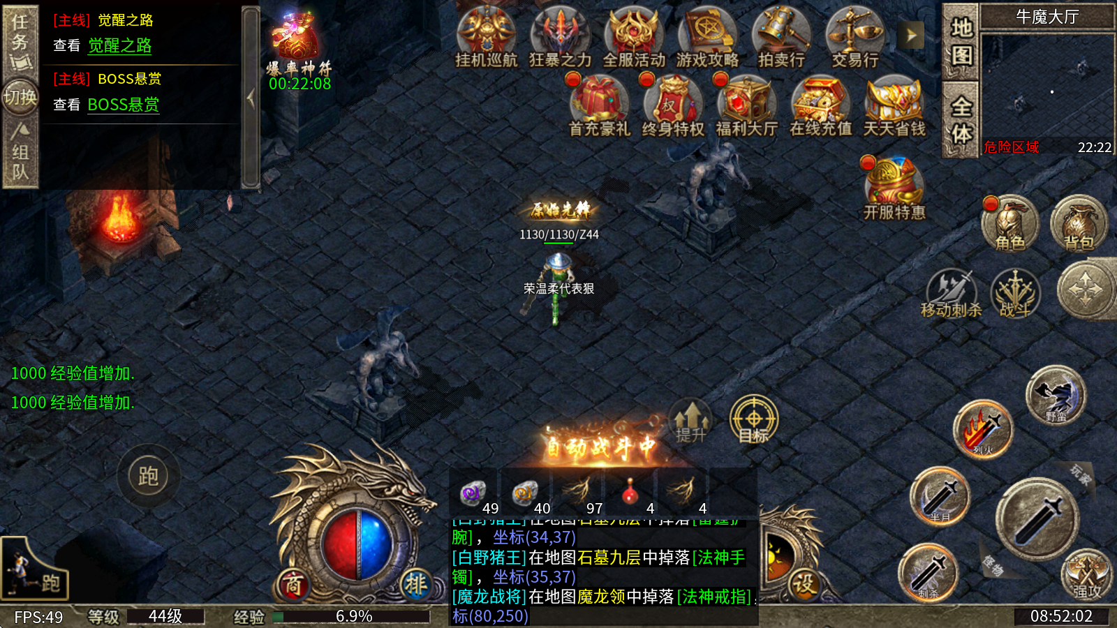 3、本服务器郑重承诺,所有装备都能通过打怪爆出,同时支持玩家间自由交易。而且,BOSS等级越高,爆出的装备品质就越好。