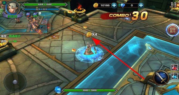 3、轻点攻击按钮,即可发动连续攻击,成功消灭敌人后,能获取高额连击数与经验值,助力角色等级迅速提升,进而稳步推进地下城的探索进程。