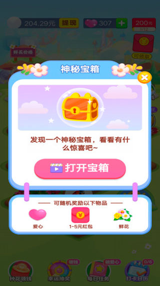 2、玩家要通过种植植物来提升花园等级,每次升级都能获取神秘宝箱,有几率开出1 - 5元红包。