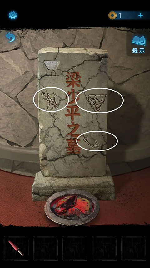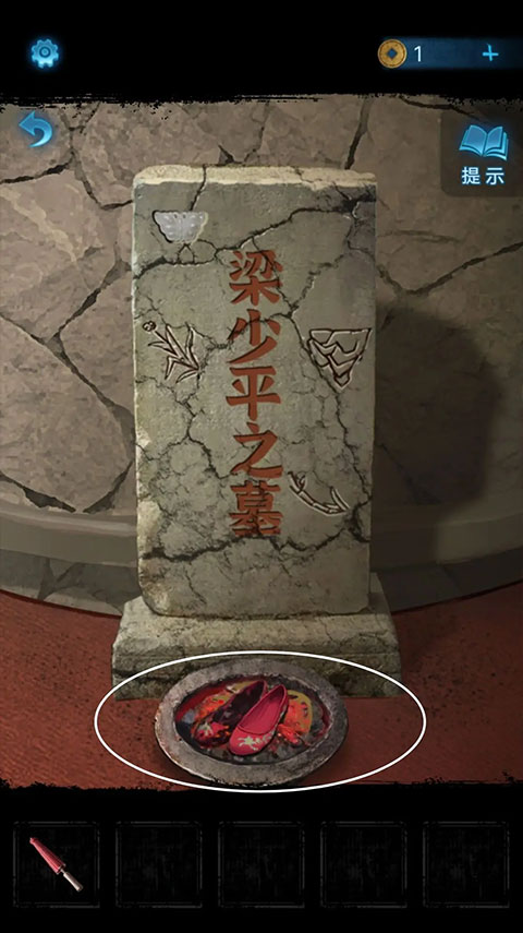 把花纹方向调整成与墓碑上一致,获取绣花鞋,返回至墓碑前,把绣花鞋扔进火盆,随后打开暗门。