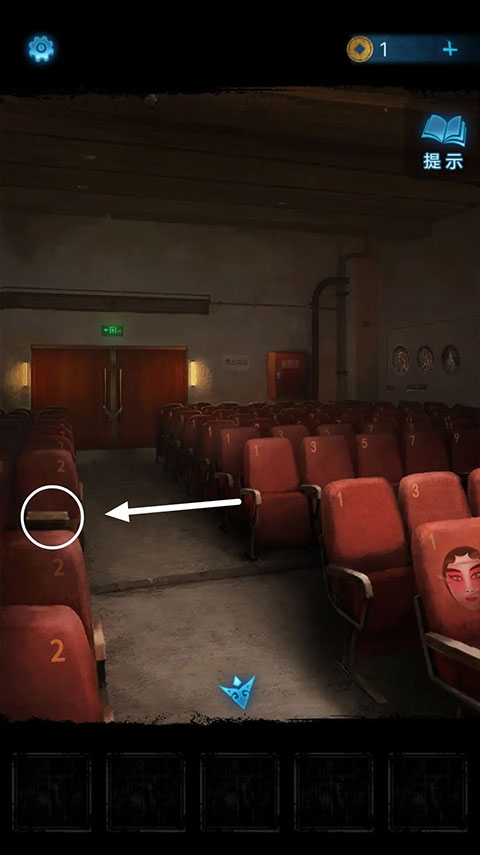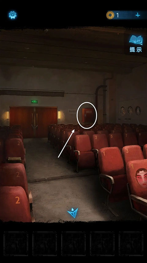 退回到观众席位置,接着点击右侧墙壁上的花纹。