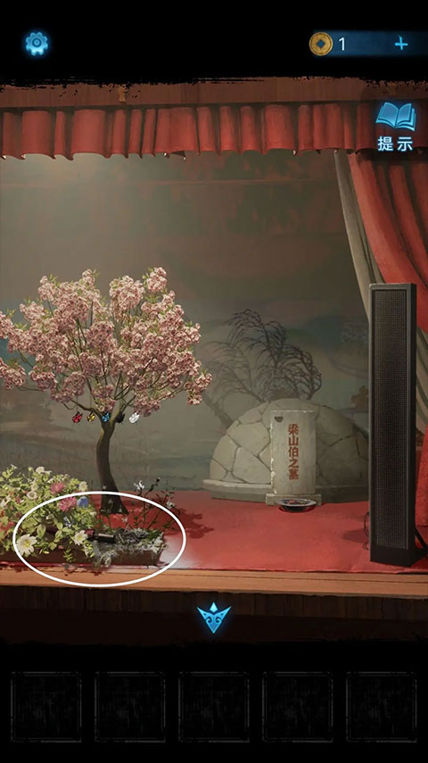 退回到戏台处,点击墓碑,把玉蝴蝶放入凹槽之中(没想到梁山伯竟然是梁少平!)