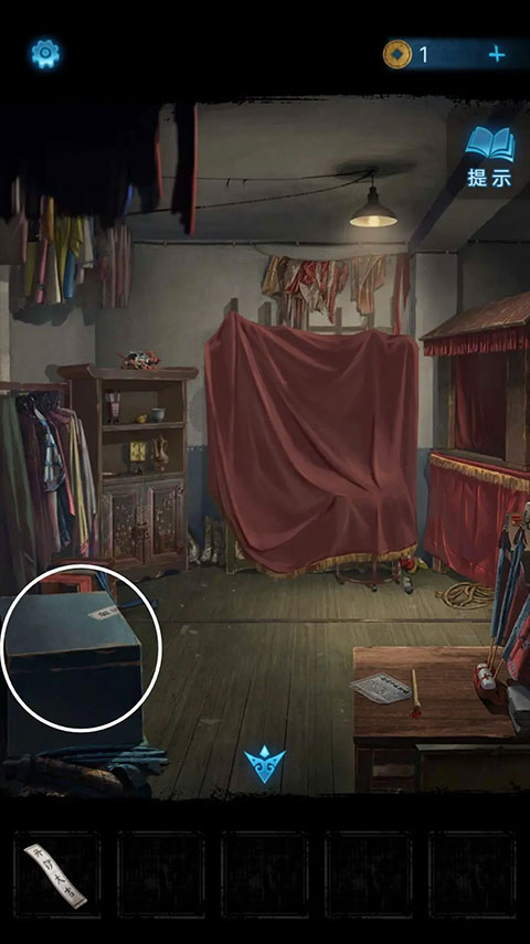 当走进暗门,靠近梳妆台,点击书本,就能获取到写有【开锣大吉】的纸条。