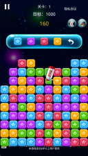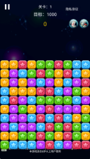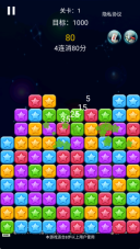 1、这款游戏的核心玩法是点击消除相同颜色的星星。当玩家点击消除星星后,上方的星星会下落以填补空位。如果在垂直方向上出现了新的可用于消除的组合,那么就会自动触发连锁消除效果。