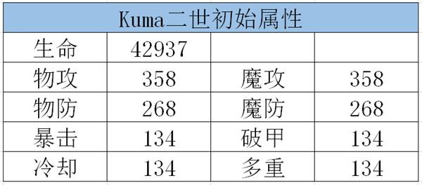 Kuma二世与海底龙相同,均是极为厉害的宠物。Kuma二世的必杀技属于魔法伤害的范围技能,与村雨、猎鹰皆能形成不错的搭配。