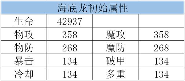 千万别抱怨获取海底龙难度高,毕竟海底龙可是当前版本的最强宠物。它的各项属性都极为出色。而且,海底龙的必杀技属于物理范围伤害,很适合执行者与双生在多人战斗时运用。