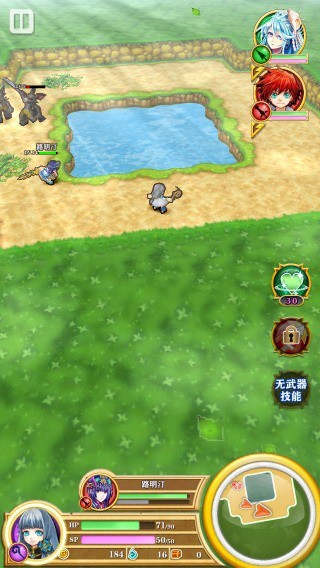 从上图可见,围绕着池子对怪物展开攻击时,敌我双方的位置一目了然,这有助于我们判断在何处停下进攻,以及靠近到多近距离时开始躲避。而且,像这种转角呈直角的障碍物(池子),在躲避敌人攻击方面也极为便利。