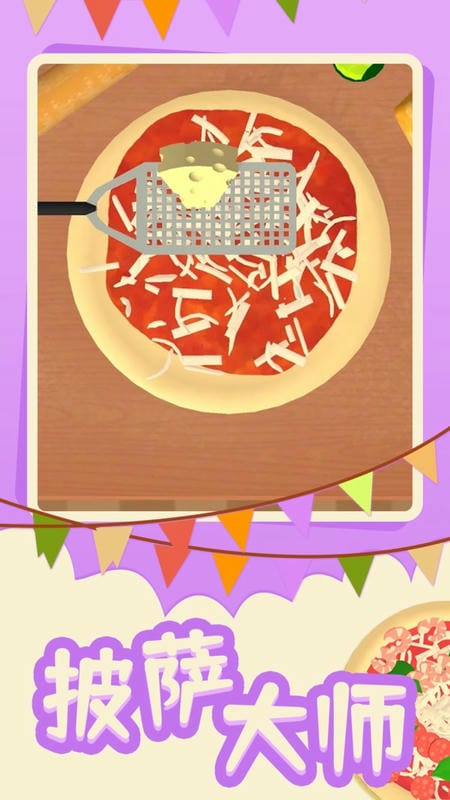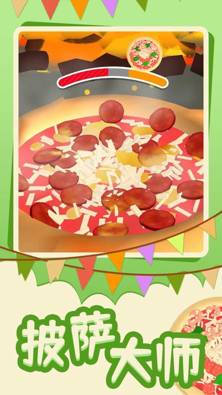 4、采用色彩鲜明的卡通画面风格,细腻且完美地展现出不同披萨的色泽光彩。