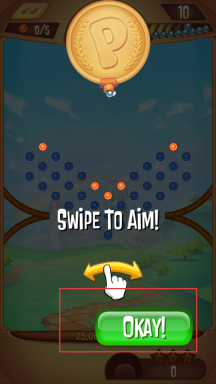 1. 玩家于游戏界面里点击OKAY按钮,即可进入游戏。进入游戏后,通过滑动屏幕来确定上方标有P标志装置发射幻幻球的方向。