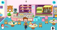 3、当玩家点击切换按钮后,场景会切换至面包店等地。在此场景中,玩家能够与角色进行互动,实现点餐操作以及开展社交活动,同时收集任务相关线索。