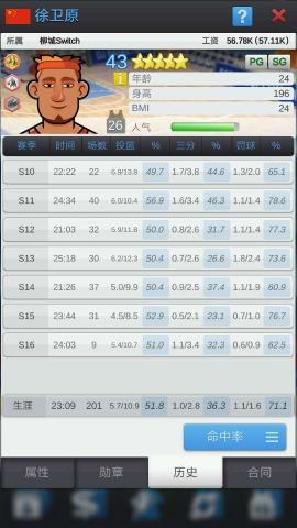 2、跑位射手型控球后卫:这类控卫往往更具得分后卫的特点,助攻能力不算突出,然而得分能力较为出色。鉴于此前我们交易了一名控卫,所以目前队伍里存在这种类型的球员。