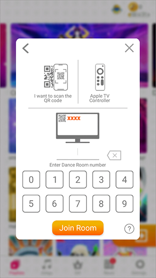 3、在您的平板电脑上,您会看到专属的舞蹈室号码以及QR码。当Just Dance Now应用程序给出提示后,扫描该代码,游戏便会连接至您的舞蹈室。