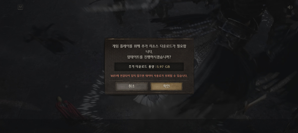 1、打开《夜鸦》(英文名为Night Crows),该游戏需借助加速器启动,且开始游戏前需准备5.97G的数据文件。